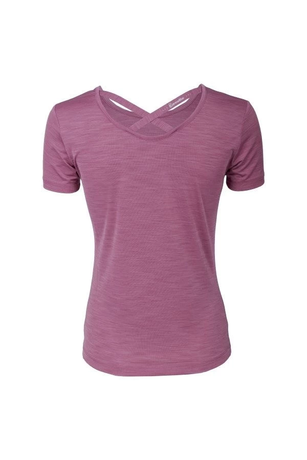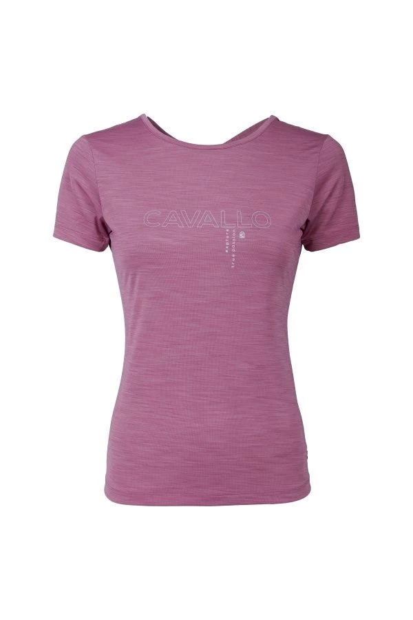 - Leichtes Damen Rundhalsshirt aus Funktionsjersey. Raffinierte Rückenausführung durch gekreuzte Bänder. Glitzerndes Cavallo Artwork auf den Bändern am Rücken. Großes, silbernes Cavallo Artwork auf der Brust.