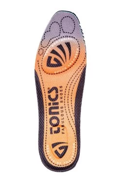 Die TONICS Einlegesohlen „ORANGE LABEL“ überzeugen durch höchsten Tragekomfort. Sie sind anatomisch geformt und durch die X- Static® Mesh- Oberfläche schnelltrocknend. Die eingearbeiteten Silberfäden wirken geruchshemmend. Die Unterseite ist durch die perforierte Front besonders atmungsaktiv. Zusätzliche Stabilität bietet das feste Mesh- Material im hinteren Bereich. Zwei unterschiedliche Schaumstoffe sorgen für einen besonderen Laufkomfort. Der Ballen und Fersenteil ist zusätzlich gepolstert und stoßmindernd. Verwendung finden sie in dem Model „SPACE II“.