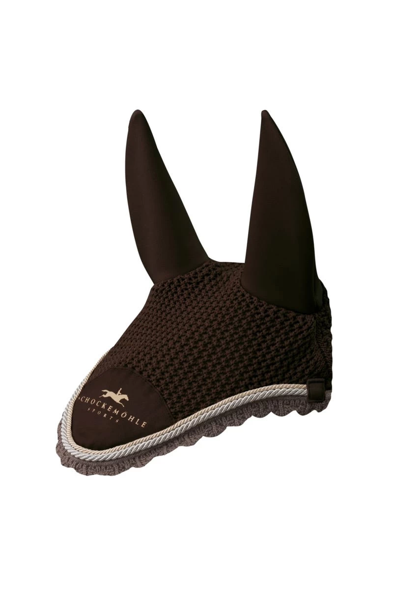 Die Fliegenhaube Dynamite Fly Veil Logo von Schockemöhle Sports ist eine gehäkelte Ohrenhaube.