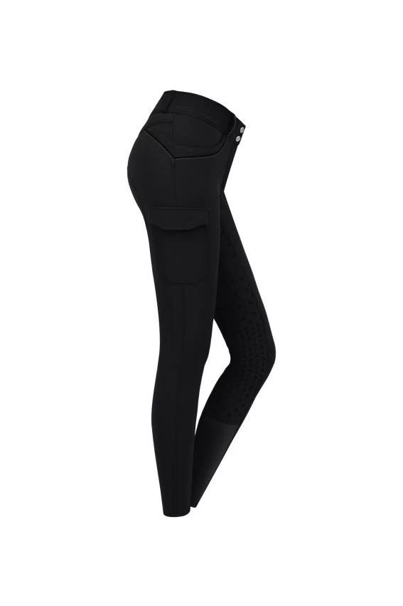 Die Silikonvollbesatzreithose Gloria Cargo High Waist von ELT ist eine stylische Hochbund Reithose für Kinder. Sie besticht besonders durch ihr Design im Cargo-Style mit dekorativen Ziernähten.