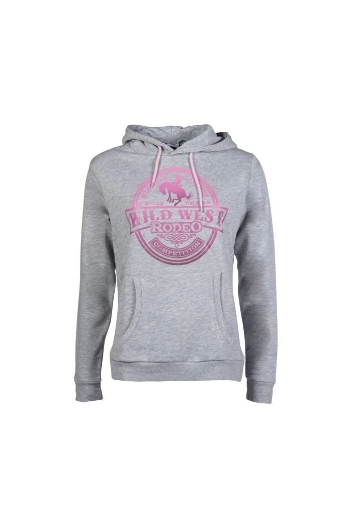 Der Hoody Wild West ist ein Kapuzenpullover aus pflegeleichtem und hautfreundlichen Baumwollmischgewebe mit Außentasche, der mit seinem glänzenden Rodeo-Druck auf der Vorderseite ein echter Hingucker ist.