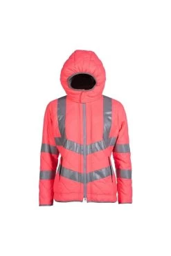 Die Damenjacke Reflective ist die ideale Jacke für erhöhte Sichtbarkeit bei Tageslicht und im Dunkeln. Das knallige Neonpink sowie diverse reflektierende Streifen an Vorderseite, Rückseite und Ärmeln sorgen dafür, dass die Reiterin schneller gesehen werden kann. Gleichzeitig bietet die Jacke mit einer leichten Wattierung in Stepp-Optik und dem winddichtem Obermaterial optimalen Schutz bei kühlem Wetter. Der Zwei-Wege-Reißverschluss bietet eine ideale Bewegungsfreiheit, auch auf dem Pferd. Die Jacke verfügt darüber hinaus über eine praktische Innentasche, die Platz für wichtige Gegenstände bietet, sowie über eine abnehmbare Kapuze. Zwei Außentaschen mit Reißverschluss bieten zusätzlichen Stauraum. Die Damenjacke ist nach EN 17353-2020 Typ AB3 zertifiziert. Die Zertifizierung belegt, dass die Jacke die Sichtbarkeit der Trägerin bei Tageslicht, Dämmerung und Dunkelheit erhöht.
