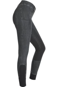 Du bist ein bekennender Jeansreithosenfan und trägst zudem Hosen mit hohem Bund? Dann sollte die Jeansreithose High Waist mit Silikonvollbesatz in Deinem Kleiderschrank nicht fehlen. Die Reithose von RidersChoice punktet sowohl beim Reiten als auch légère im Alltag, denn sie bietet durch den bequemen und weichen Jeansstoff eine hohe Bewegungsfreiheit. Während der matte Vollbesatz aus Silikon für einen optimalen Sitz im Sattel sorgt, verhindert der elastische Beinabschluss das Verrutschen am Bein. Die High Waist Jeansreithose ist in Deinen beliebten Farben dark navy und grey erhältlich.