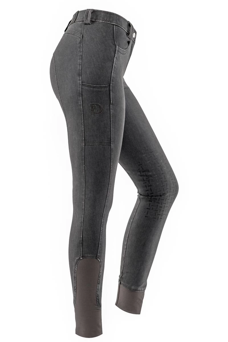 Der bequeme und elastische Jeansstoff lässt Dich in jeder Situation top gestylt aussehen, egal ob beim Reiten oder légère im Alltag. Die RidersChoice Jeansreitreithose mit Silikonkniebesatz eignet sich optimal für Deinen Stallalltag. Während der Jeansstoff ein angenehmes Gefühl auf der Haut gibt, sorgt der elastische Beinabschluss für einen optimalen Sitz am Bein. Neben der bekannten Farbe “grey” ist die Jeansreithose mit Silikonkniebesatz auch in der stylischen Farbe “dark blue” erhältlich.