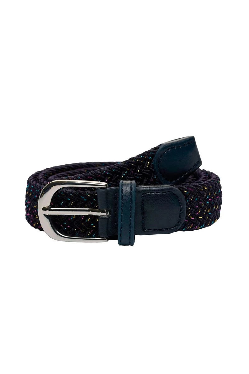 - Elastischer geflochtener Gürtel mit mehrfarbigem Glitzereffekt. PU-Enden und Metallschnalle