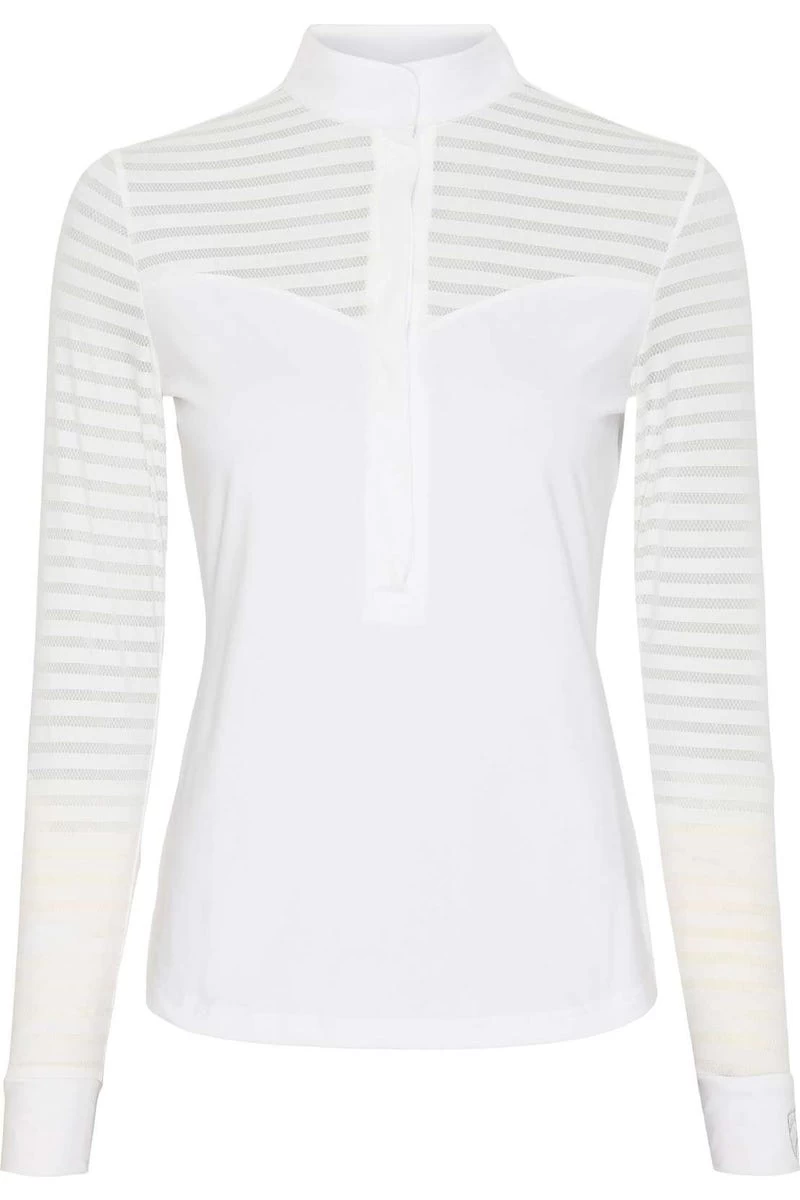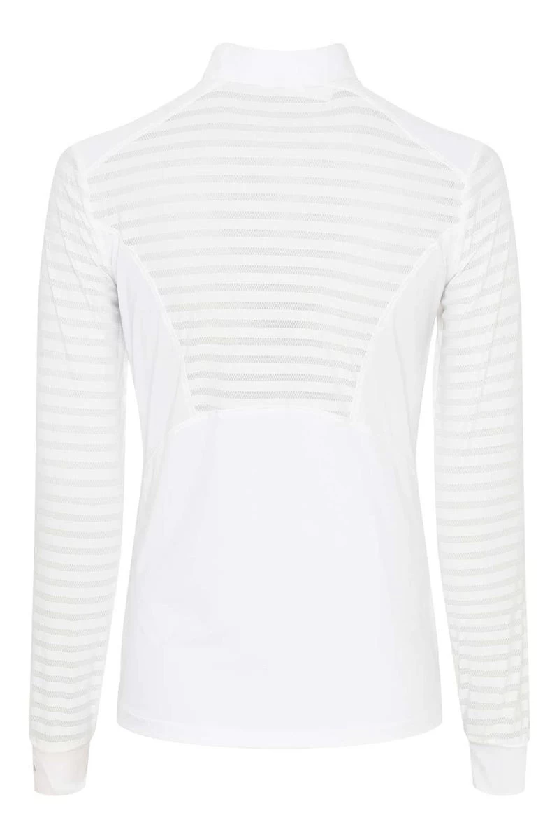 - CATAGO Phelina, eine elegante Turnierbluse aus angenehmem Stretchmaterial, das eine feminine, stilvolle und gute Passform ergibt. Das Stretchmaterial sorgt zugleich für eine größere Beweglichkeit, was diesen Pullover ideal zum Reiten und für Turniere macht. Schön gestaltet mit Streifeneffekten und Druckknöpfen entlang von Kragen und Brust. Die Druckknöpfe aus Metall sind unsichtbar, wenn der Kragen zugeknöpft ist. Der Kragen kann geschlossen, um einen formellen Look zu erzielen, oder geöffnet werden, um ein entspannteres Aussehen zu ergeben. Erhältlich in Weiß und Schwarz.