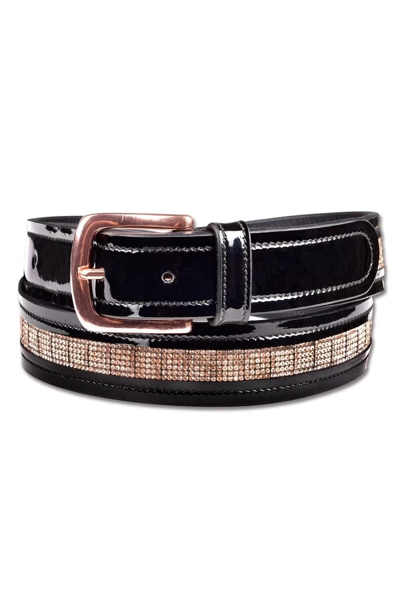 - Besonders edler Ledergürtel als modische Ergänzung zu der Waldhausen Rosé Serie, 6 reihige Strasssteine in rosé, Schwarzes Lackleder, Roségoldene Schnalle, Gürtelbreite: ca. 3 cm