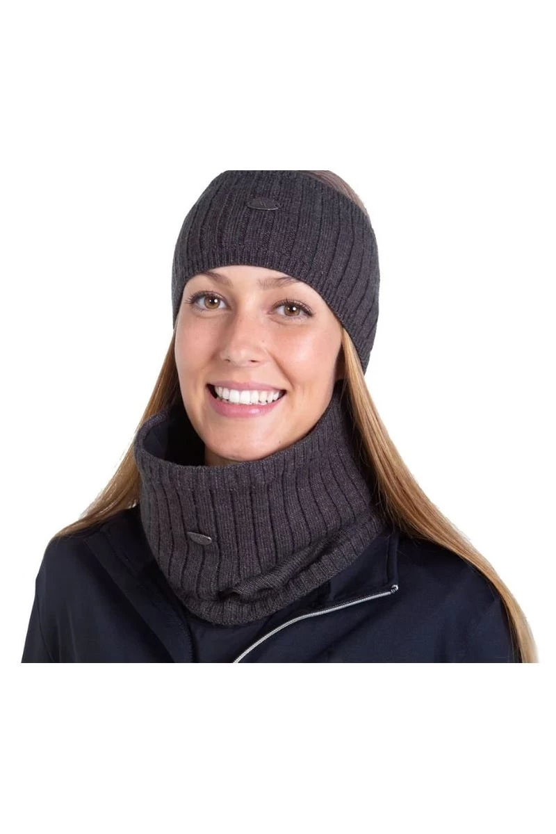 - Stilvoller und bequemer Loop-Schal, der sie in der Kälte warm hält. Halten sie ihren Nacken auch bei niedrigen Temperaturen warm und flexibel. Devon ist ein mit IONTEX®Technologie gefütterter Rippenstrick-Schal in einer Schlaufenform. Iontex®reflektiert die natürliche Wärmeenergie des Körpers in Form von langwelliger Infrarotenergie. Es kann die Durchblutng anregen, was bei steifen Nackenmuskeln hilfreich sein kann. Die Technologie zeichnet sich durch ihre hohe Atmungsaktivität aus, und ist für ihre temperaturregulierenden und schnelltrocknenden Eigenschaften bekannt. Der Schal wird mit zwei verschiedenen Methoden gestrickt, wodurch eine bequeme Schlaufe entsteht, die sich angenehm um den Nacken legt. Rippstrick, um Luftschichten zu erzeugen, und somit eine isolierende Wirkung zu erzielen. Stilvolle, melierte hell/dunkelgraue Farbe. Metallemblem mit Back on Track Logo im oberen Bereich.-Iontex® Technologie-Rippstrick Design-Warm mit hoher Atmungsaktivität-Metallemblem mit unserem Logo