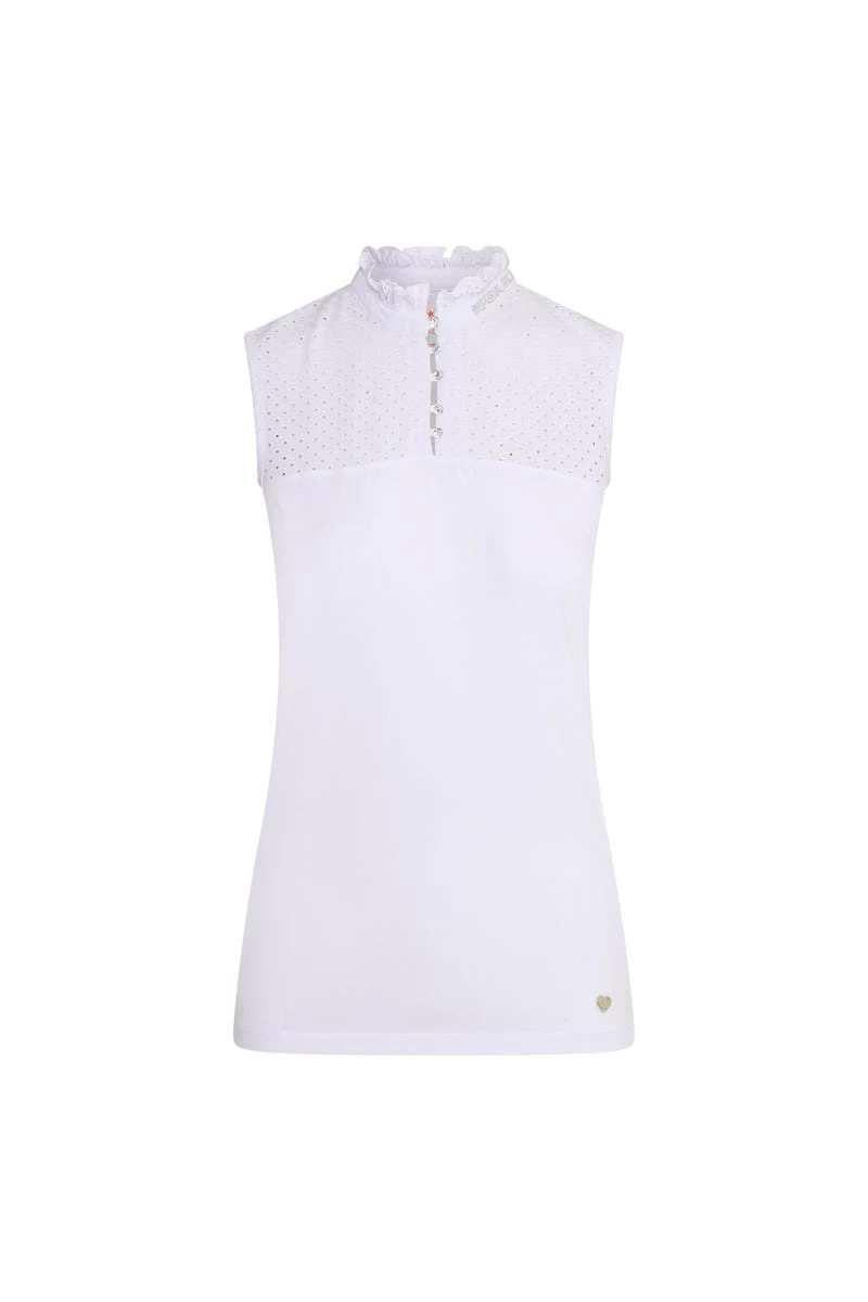 - Ärmelloses Poloshirt aus festem Jersey-Mix mit englischer Stickerei