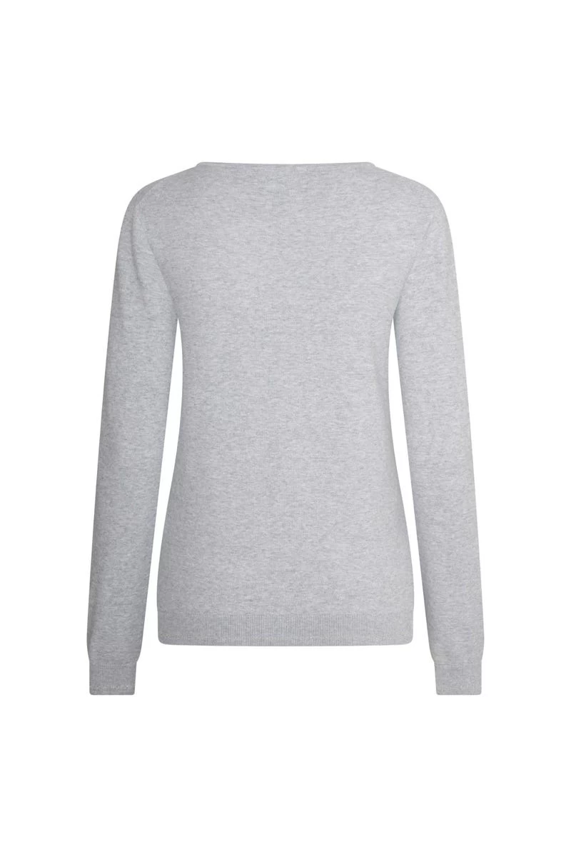 - Weiches Baumwoll-Elastan-Gestrick mit V-Ausschnitt, reichhaltiges Artwork auf der Brust mit Metallic-Print und Strasssteinen