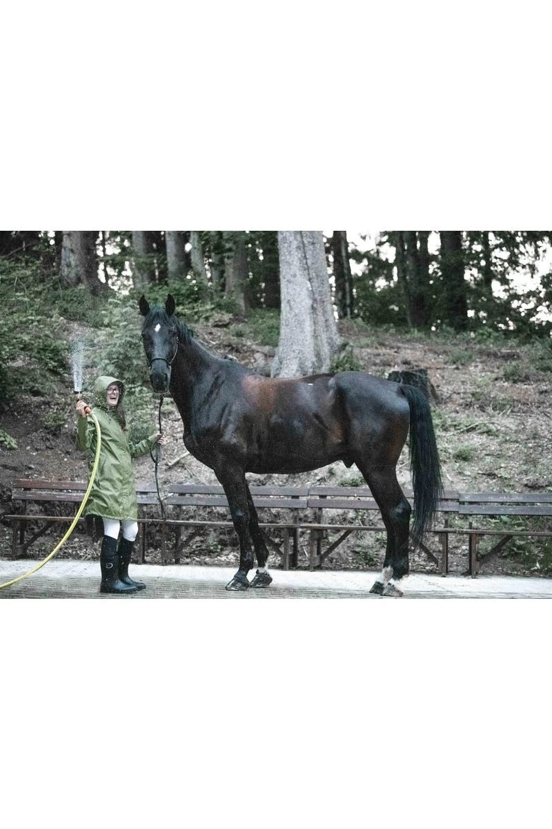Wie gewohnt hält Dich das leichte Fleece-Lining warm und trocken. Über die verkürzte Kordel an der Taille lässt sich der Mantel individuell an Deinen Körper anpassen. In den zwei verschließbaren Seitentaschen kannst Du Leckerlies oder andere Kleinigkeiten verstauen. Weitere optische Details, wie die verlängerte Rückenpartie oder das RidersChoice Logo auf dem rechten Arm, setzen den Regenmantel von RidersChoice 2.0 gekonnt in Szene. Durch die eingearbeiteten Druckknöpfe kann der Mantel hinten geöffnet werden und ist somit ideal für lange Ausritte oder verregnete Trainingseinheiten geeignet.