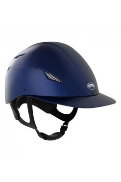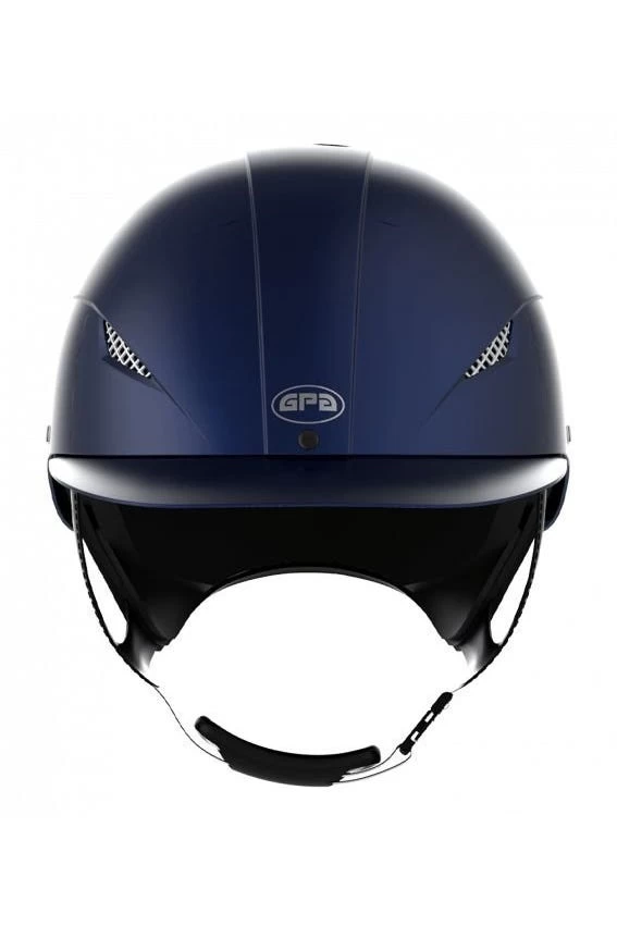 Der klassische Kinnriemen wird durch ein hybrides System ersetzt. Einzigartig von GPA. Der hintere Teil des Kinnriemens, der sich zwischen dem Twin Lock System und dem traditionellen Kinnriemen befindet, besteht aus thermoplastischen Harz und eingebundenem Glasfasergewebe. Die mit Kunstleder überzogenen Nylon-Befestigungsriemen werden mit einer zweiteiligen Schnalle geschlossen. Dank seines starren Teils auf der Rückseite, der die Schale verlängert, garantiert der Hybrid-Kinnriemen einen größeren Schutz und einen besseren Halt des Helmes auf dem Kopf. Sein erschwinglicher Preis und sein Design wird auch die konventionellen Reiter überzeugen.