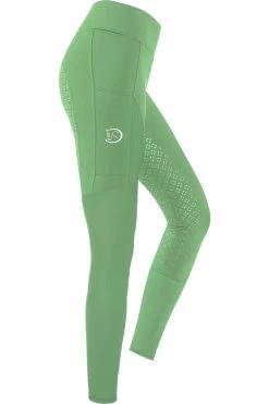 Der hoch elastische Stoff ist mit den luftigen Mesh-(Netz) Einsätzen an Unter- und Oberschenkel kombiniert und bietet Deinem Kind dort hohe Luftzirkulation. Der matte Vollbesatz aus Silikon gibt einen guten Halt im Sattel. Das Handy oder andere Kleinigkeiten können leicht an den zwei Seitentaschen am Oberschenkel verstaut werden. Der extra breite und verstärkte Gummibund der Reitleggings passt sich der Kinderfigur an. Erhältlich ist die Reitleggings in den Größen 128, 140, 152 und 164 sowie in vielen verschiedenen Farben.