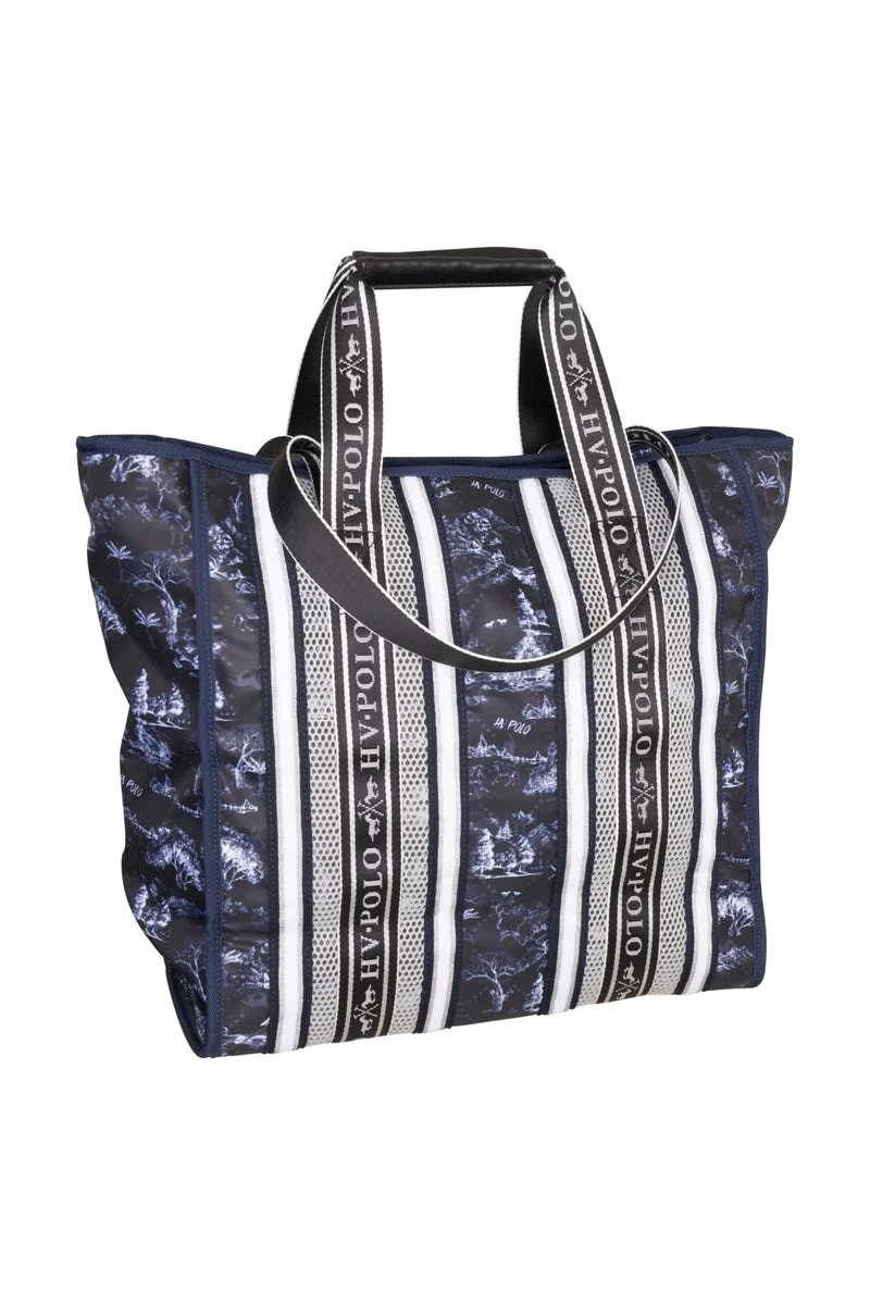 - Modische Einkaufstasche mit sportlichen Griffen mit Logo und gestreiftem Saum.