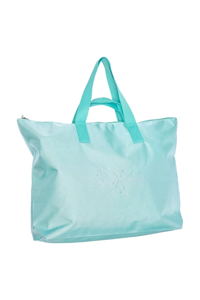 Die Tragetasche verfügt über ein aufgedrucktes Logo-Motiv mit Strasssteinen auf der Vorderseite.