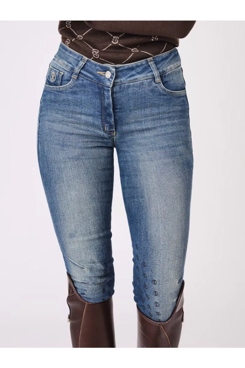 Jeansreithose mit Halbgripbesatz. Hergestellt aus elastischem Jeansstoff für eine perfekte Passform und optimale Bewegungsfreiheit. Gleichfarbige Mesheinsätze an den Beinenden für Kompression und perfekten Sitz am Bein. Funktionelle und stylische Details wie 5-Taschen-Design und PS Logo Stickereien.