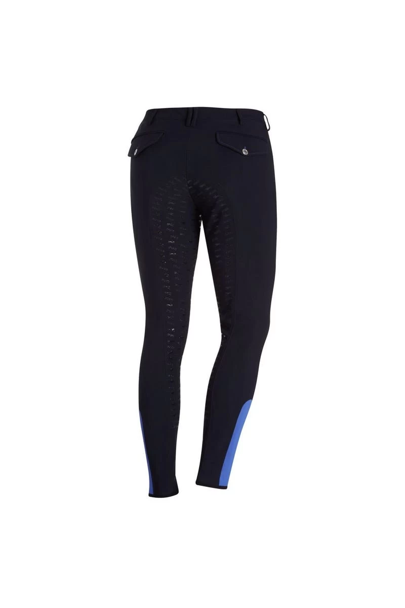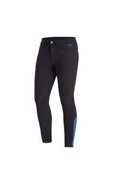 Außerdem verfügt die Herren Silikonvollbesatzreithose Hero von Schockemöhle Sports über einen flexiblen Beinabschluss und hat Eingrifftaschen mit einem Logostick. Es befinden sich zudem keine störende Nähte am Kniebereich.