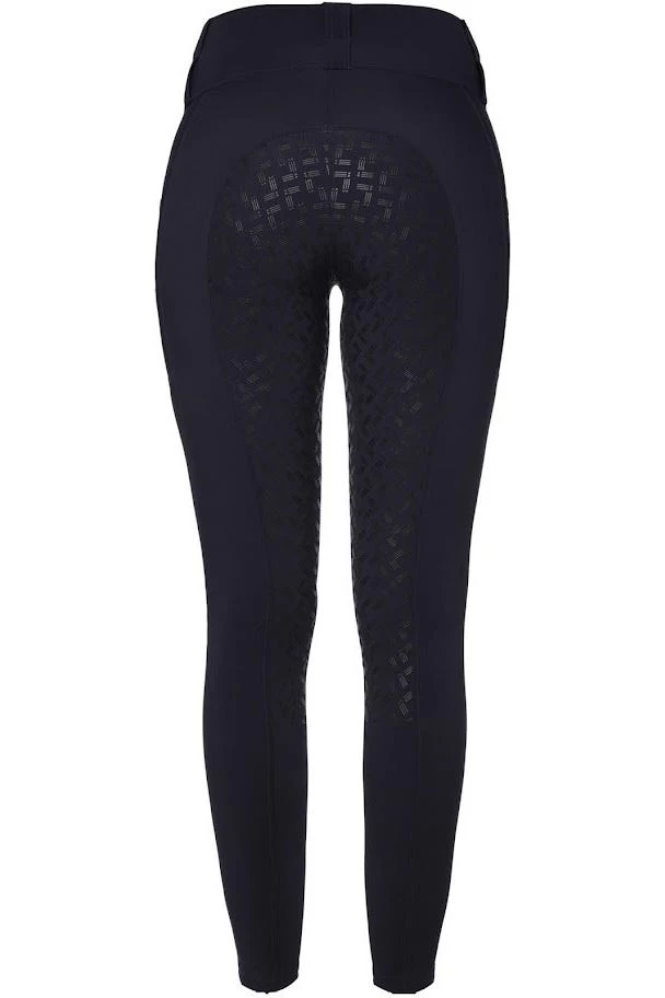 Durch den matten Vollbesatz aus Silikon sorgt die Reithose für Damen für einen guten Halt im Sattel und hält durch den extra hohen Bund Deine Nieren schön warm. Die eleganten Details an der Seitennaht setzen Deine Figur optimal in Szene. Ob Du Dein Handy lieber links oder rechts trägst, kannst Du frei wählen – dafür sorgen die beidseitigen Handytaschen am Oberschenkel. Du verwendest gerne einen Gürtel? Kein Problem – der Bund ist so gestaltet, dass Du frei wählen kannst, wo Du ihn am Liebsten trägst.