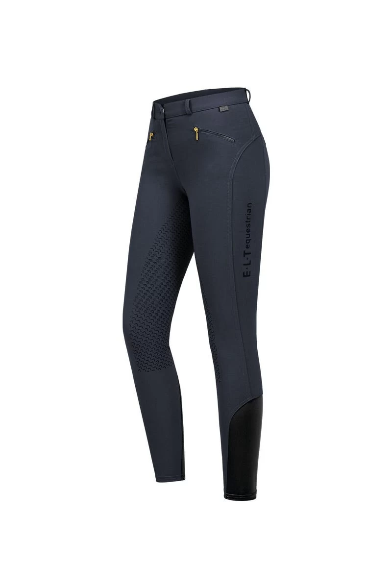 Optisch kann die Reithose mit dem Schriftzug aus dekorativen Pailetten und Silikonprint sowie dem hochwertigen ELT-Metal-Tag überzeugen.