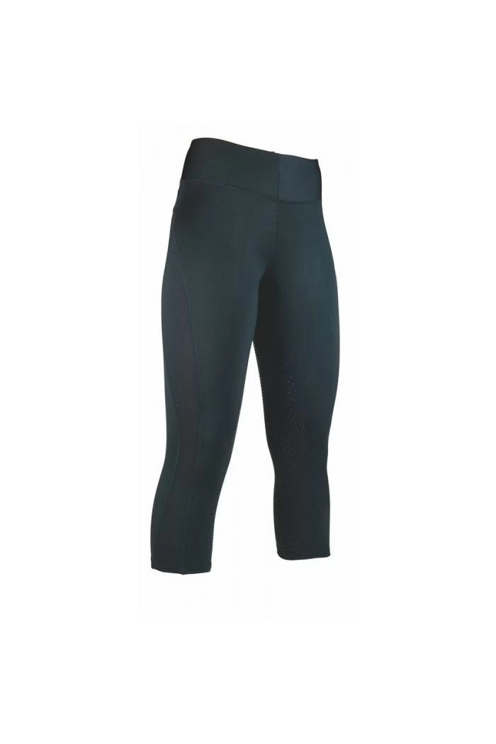 Sportliche Damen-Reithose in Dreiviertellänge mit Silikon-Vollbesatz, inklusive eingesetzter und nicht transparenter Meshware. Die Hose bietet einen breiten Bund, der für einen hohen Tragekomfort sorgt. Durch das bi-elastische und atmungsaktive Material ist die Hose ideal für warme Sommertage. Die Capri Reitleggings kann ganz einfach mit leichten Reitsocken kombiniert werden, bevor Reitstiefel angezogen werden. Die Reißverschlusstasche am hinteren Hochbund bietet einen zusätzlichen Vorteil.