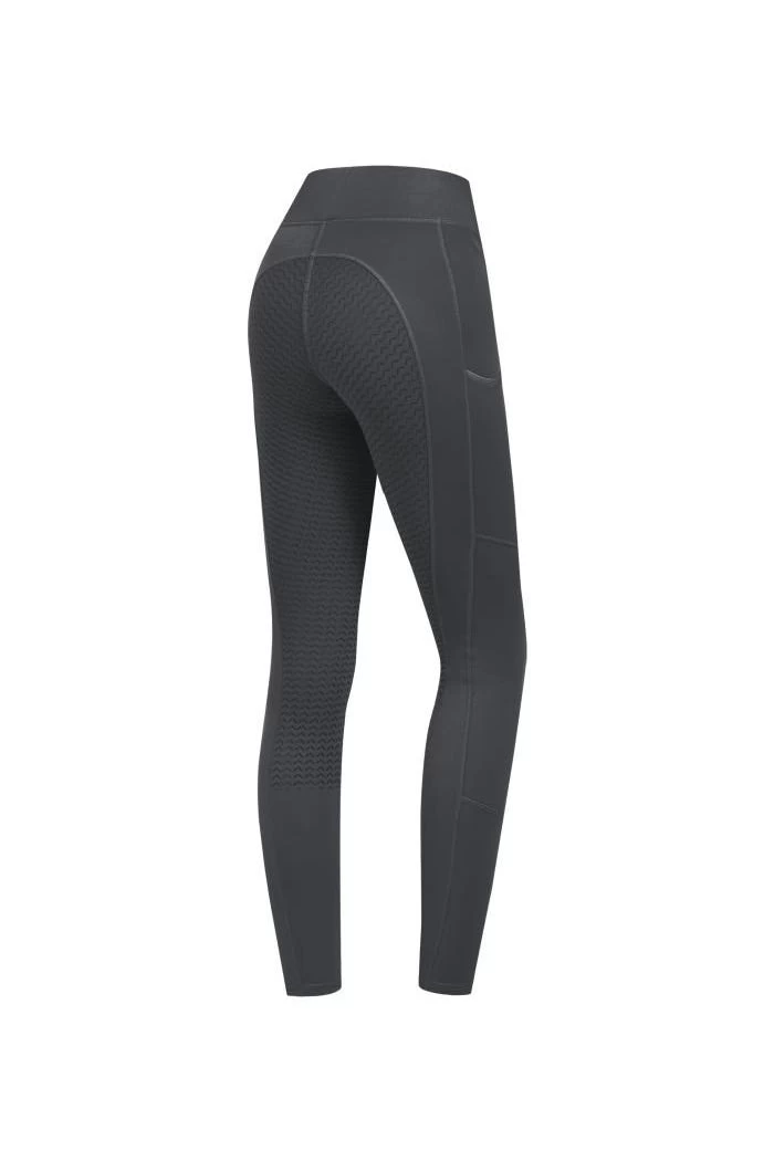 Zudem ist die Reitleggings mit Handy-Einschubtaschen mit einem glänzendem Silikonprint ausgestattet.