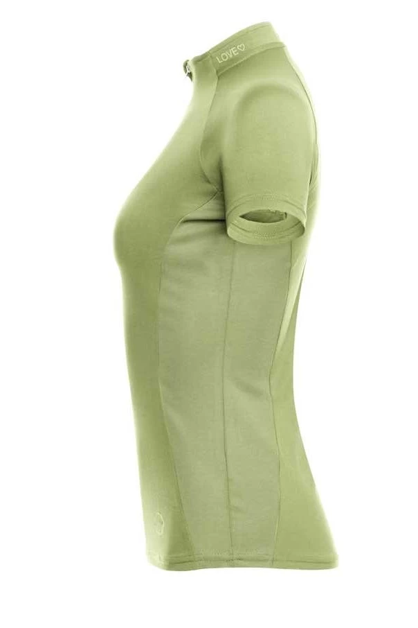 Durch den stretchigen, atmungsaktiven und schnell trocknenden Stoff ist der Baselayer Dein idealer Begleiter an warmen Sommertagen. Der taillierte Schnitt sowie die an der Seite eingearbeiteten Mesh- (Netz)Einsätze schmeicheln Deiner Figur. Ein weiteres optisches Highlight wird durch den Zipper mit Herzausstanzung gesetzt. Die “LOVE <3" Applikation am elegant abgesetzten Kurzkragen verleihen ein schickes, sportliches Aussehen. Unser Pferdekopf Logo findest Du auch bei diesem Model am unteren linken Rand. Durch die verbesserte Qualität konnten wir das Pilling nochmals verringern.