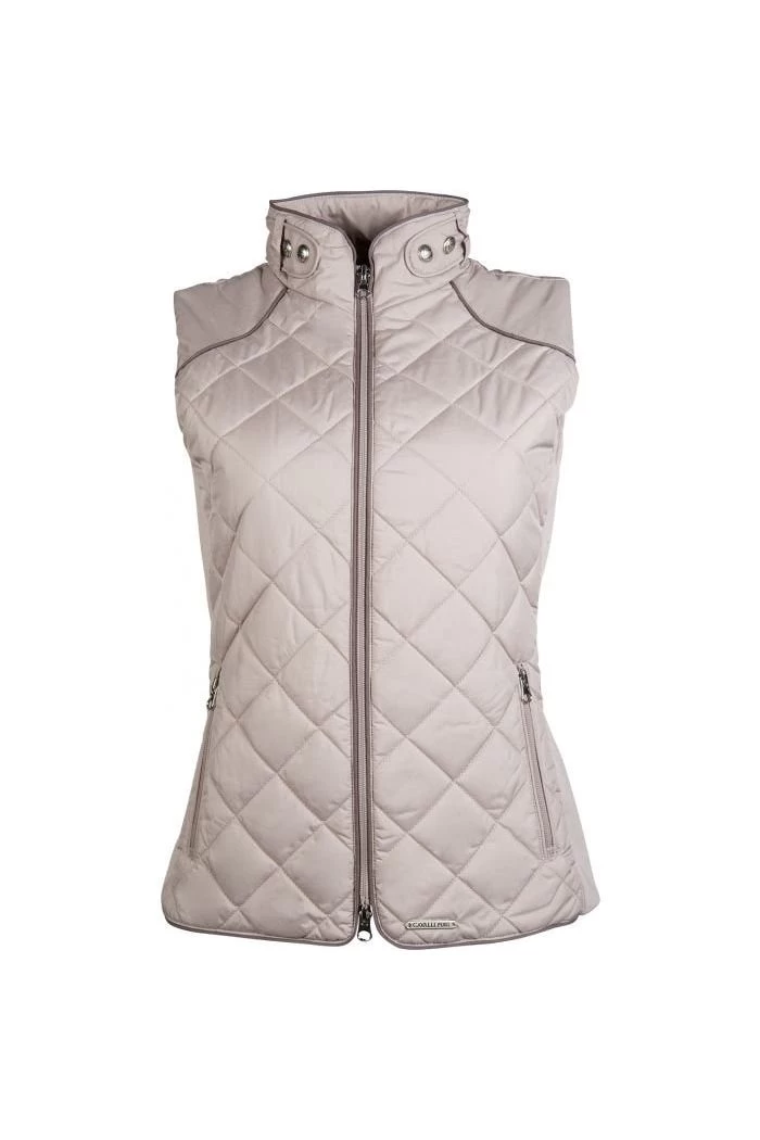 Stylische Damen-Steppweste Melody. Eine leichte Wattefüllung zusammen mit einem taillierten Schnitt machen die Weste besonders komfortabel. Elastische Seiteneinsätze sorgen für genügend Bewegungsfreiheit beim Reiten. Zusätzlich ist die Reitweste mit einem 2-Wege-Reißverschluss, einer typischen Steppung und raffinierten Details am Kragen ausgestattet.