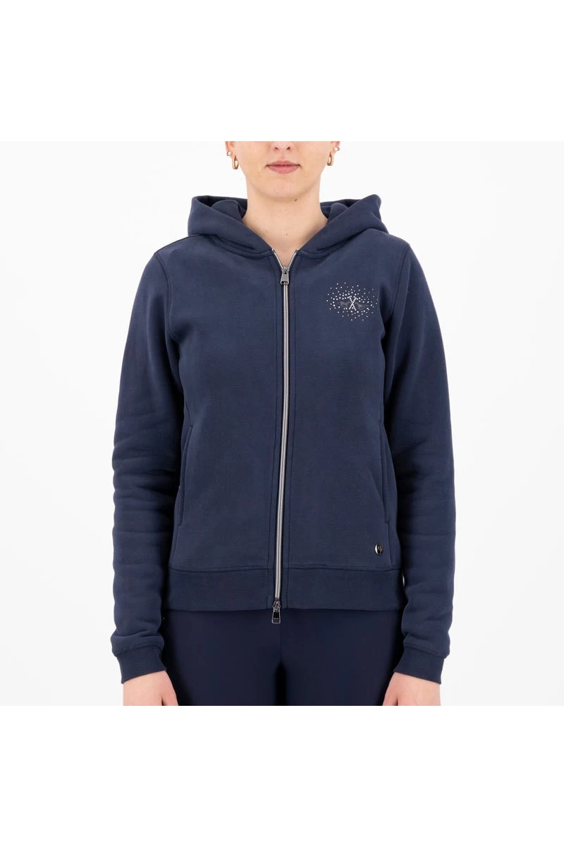 - Sweatcardigan mit Kapuze * Rippbündchen und Rippung am unteren Abschluss * Strasssteine mit Foliendruck-Verzierung auf der linken Brust * Frontverschluss mit Zwei-Wege-Reißverschluss * Metallmünze an der unteren linken Tasche