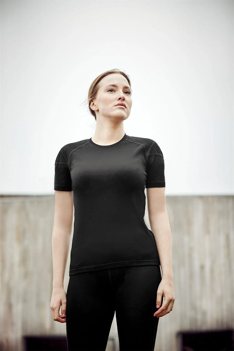 - Das May T-Shirt hat kurze Ärmel und einen runden Halsausschnitt. Die Merinowolle leitet überschüssige Wärme und Feuchtigkeit effektiv von der Haut weg und hält sie damit trocken und warm. Das May T-Shirt eignet sich daher ideal zum Unterziehen.