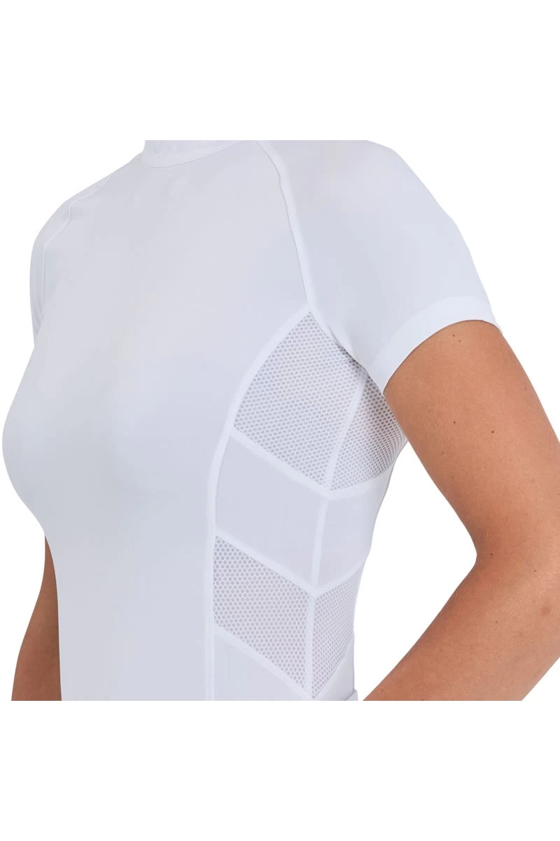• mit großzügigen Mesheinsätzen unter den Armen, in der Taille und im Rückenbereich zur Vermeidung von Hitzestau bei sportlicher Performance sogar bei hohen Temperaturen