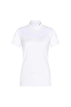 Optisch kann das Turniershirt mit dem gedruckten Logo mit Strasssteinen auf der Brust sowie dem gedruckten Pferde-Logo am Kragen überzeugen.