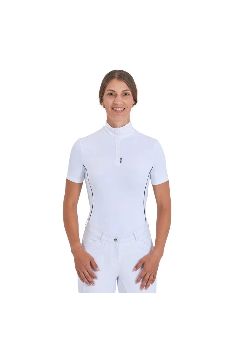 • sportlich-dynamisches Turnier-Shirt mit figurbetonenden Teilungsnähten und farblich akzentuierenden Biesen