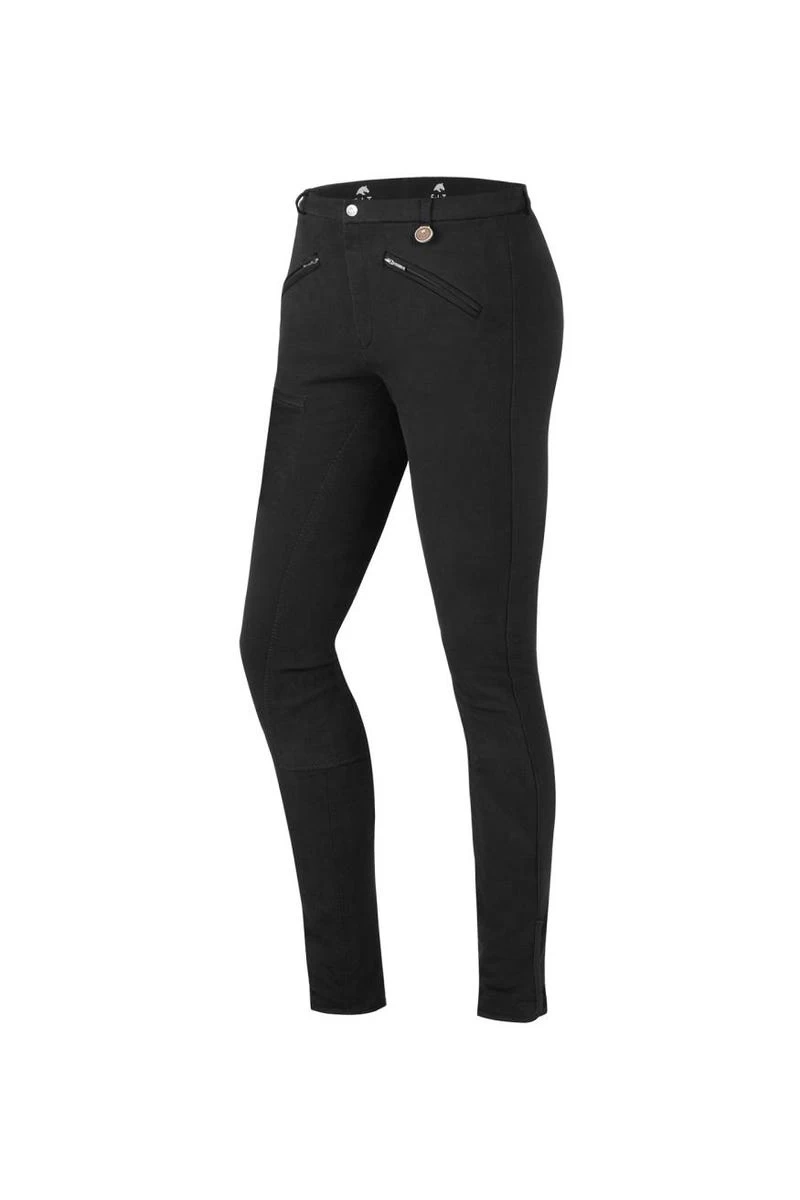 Zudem verfügt die Winter Reithose über einen Beinabschluss mit Klett und hat einen Kunstleder-Vollbesatz.