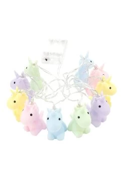 Die Einhörner Lichterkette für Kinder von Waldhausen besteht aus 10 pastellfarbenen Einhörnern die in einem warmen Licht erstrahlen.