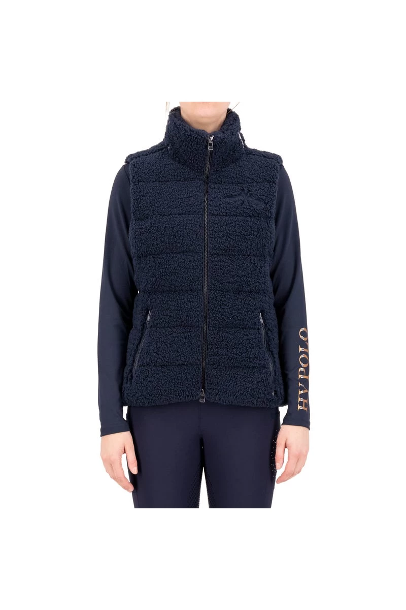 - Warme wattierte Fleece-Weste *Zwei-Wege-Reißverschluss vorne * HV-Pferde-Stickerei auf der linken Brust* Gewebte HVP-Buchstaben-Applikation am Kragen auf der Rückseite * Vordertaschen mit Reißverschlüssen * Metallmünze links unten am Reißverschluss