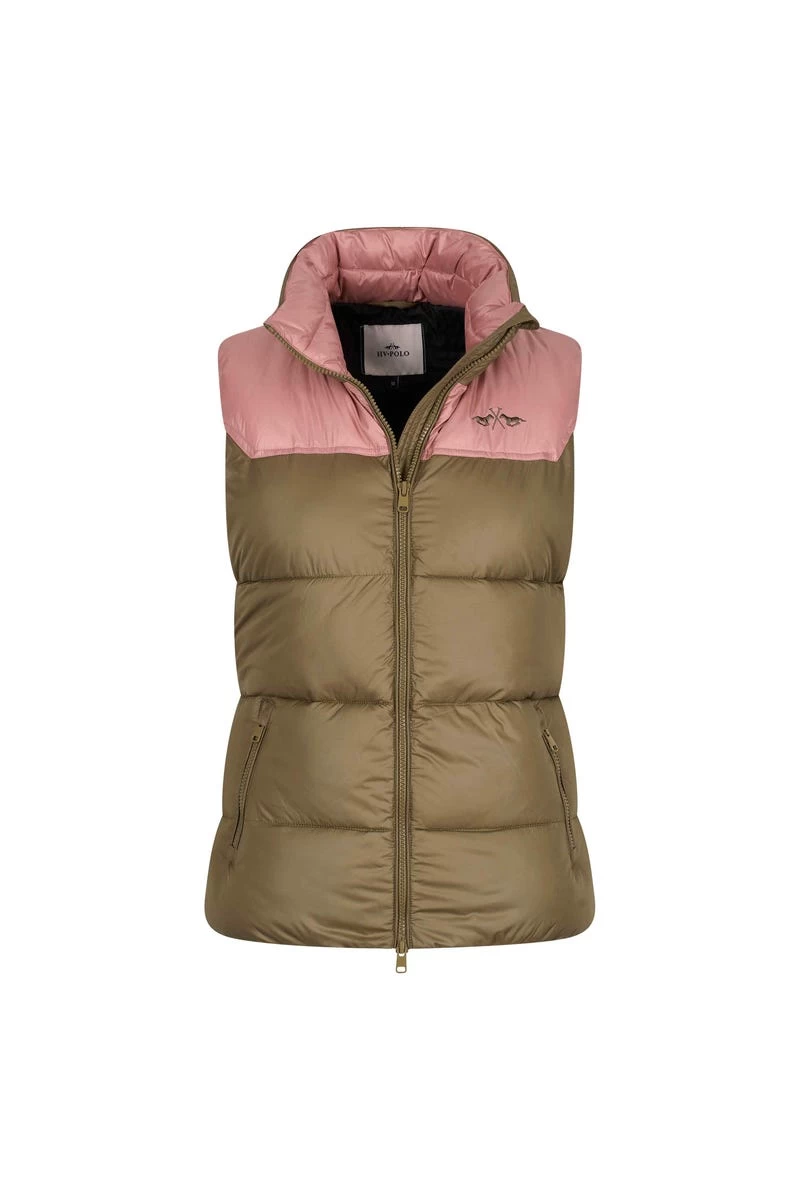 - Mittelstark wattierte Weste * Kombination von 2 Farben der Kollektion * Stoff mit Perlglanz* Atmungsaktiv * Winddicht * Hoher Kragen * Kontrastfarbenes Futter * Zwei-Wege-Reißverschluss vorne* Marken-Zuglaschen * Kinnschutz mit Sturmleiste* HVPolo-Stickerei am Kragen * Pferde-Logo-Print in glänzendem Metallic auf der Brust * *Glänzender Fake-Daunen-Etikett-Print im Inneren der Jacke am Futter * Vordertaschen mit Reißverschlüssen * Innentasche mit Reißverschluss * Auf Obermaterial farblich abgestimmte Reißverschlüsse